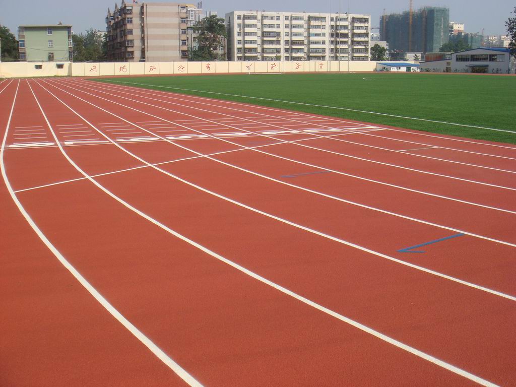 2.防滑:塑膠跑道鋪面特制的防滑層,能保證其表面不滑,并為運(yùn)動(dòng)員提供一個(gè)接觸穩(wěn)定安全感覺(jué),即使在潮濕條件下和惡劣天氣中也能保證運(yùn)動(dòng)員起步、加速、跑動(dòng)快速安全。