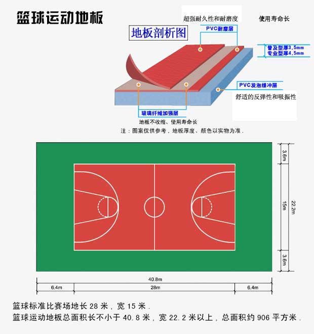 2.PVC彈性地板材料是國際正式的包括籃球在內(nèi)的球類運(yùn)動場地的優(yōu)先選擇。只有PVC運(yùn)動地板才可能被用來鋪設(shè)國際公認(rèn)的羽毛球、乒乓球、排球、手球等的比賽場地。