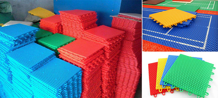 時可使用橡皮錘敲擊地板接縫,不需膠水和任何釘子,塑格拼裝地板通常四人不到三小時即可完成場地鋪裝或揭起。