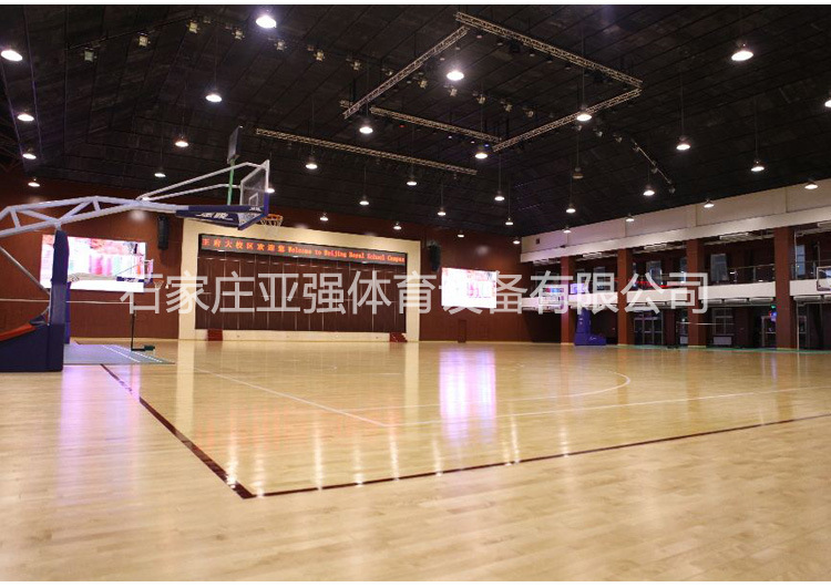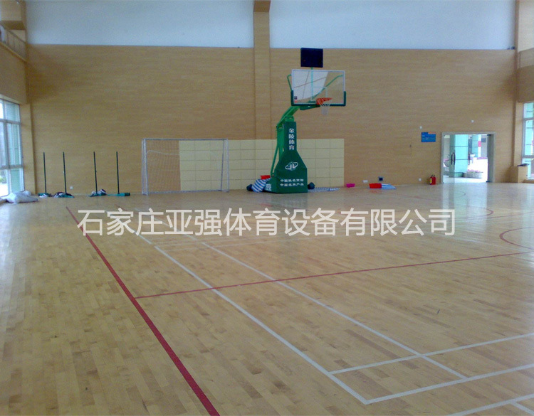 (二)運(yùn)動(dòng)體育木地板的技術(shù)功能 體育專業(yè)木地板的承重負(fù)荷及牢固化使用壽命必須達(dá)到比賽及訓(xùn)練的要求,如活動(dòng)籃球架