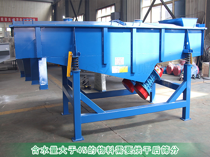 直線振動(dòng)篩在篩分含水量高或者粘性高的物料時(shí),需要減少物料的含水量后才能篩分使用,因?yàn)楹扛叩奈锪细哂姓吵硇?,在篩分過程中容易吸附在篩網(wǎng)上,造成篩網(wǎng)堵塞,對(duì)于含水量大于4%的物料需要烘干后篩分,含水量大于20%時(shí)需要采用濕式篩分。