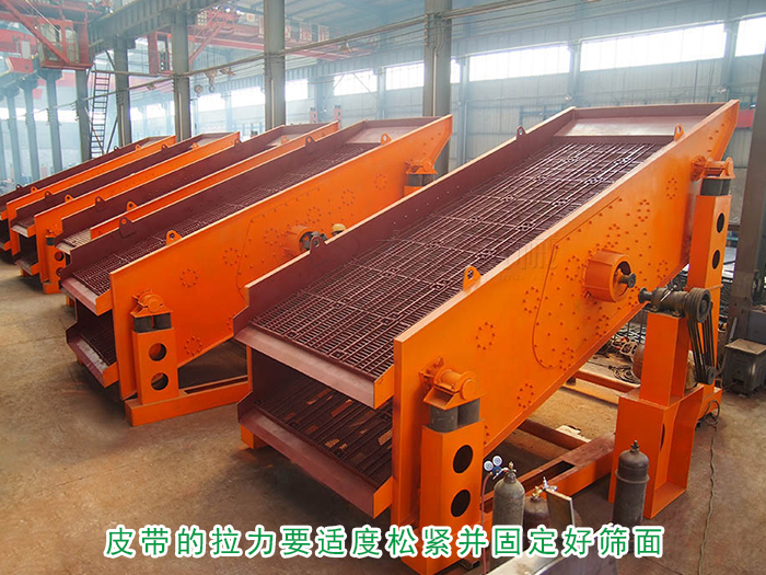 開始安裝時,電動機的水平應(yīng)矯正好,兩皮帶輪對應(yīng)槽溝的中心線應(yīng)當(dāng)重合,三角皮帶的拉力要適度松緊,然后按要求安裝并固定好篩面。