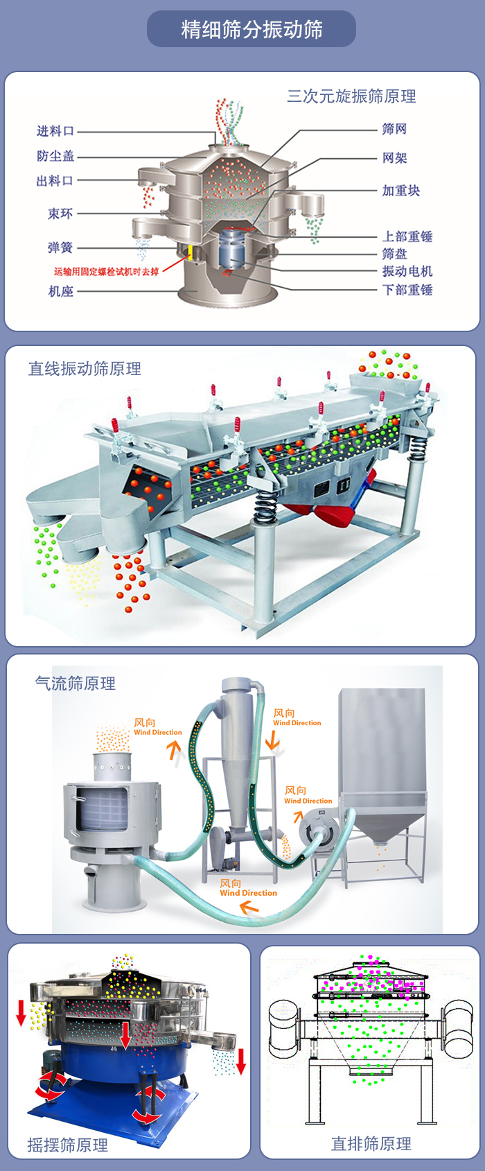 振動篩又被叫做篩粉機(jī)、電動篩,是一種適合與精細(xì)物料篩分的振動篩分機(jī)械設(shè)備,被各行各業(yè)所廣泛使用,尤其體現(xiàn)在食品行業(yè)和化工行業(yè)的生產(chǎn)活動中。振動篩設(shè)備分類廣泛,精細(xì)篩分設(shè)備是用處最廣的,那么小編今天就和大家分享精細(xì)篩分中各種篩分設(shè)備的原理。