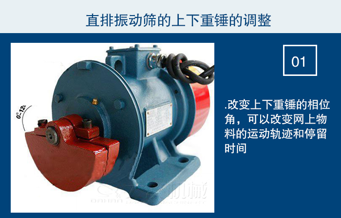 1.改變上下重錘的相位角,可以改變網(wǎng)上物料的運動軌跡和停留時間。為是篩機適應(yīng)各種物料所需求的分離狀態(tài),如物料的分布,處理量、過網(wǎng)率等各種變化,應(yīng)將它調(diào)整到最佳狀態(tài)。