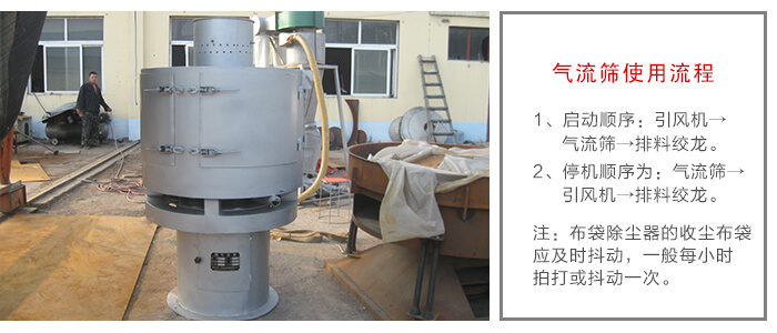 氣流篩組操作啟動順序:引風(fēng)機→氣流篩→排料絞龍。