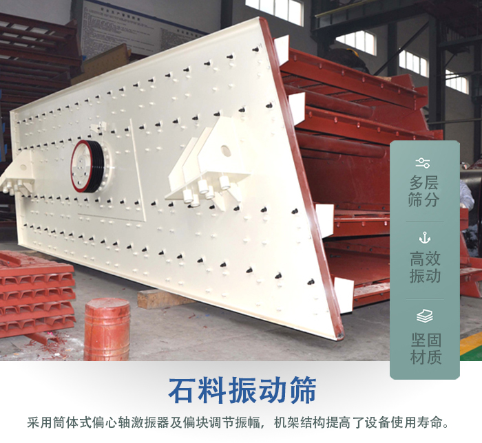 大漢石料振動篩是一種多層數(shù)、新型振動篩。振動篩采用筒體式偏心軸激振器及偏塊調(diào)節(jié)振幅,物料篩淌線長,篩分規(guī)格多,具有結(jié)構(gòu)、激振力強、篩分效率高、振動噪音小、堅固耐用、維修方便、使用等特點,圓振動篩應(yīng)用于礦山、建材、交通、能源、化工等行業(yè)。
