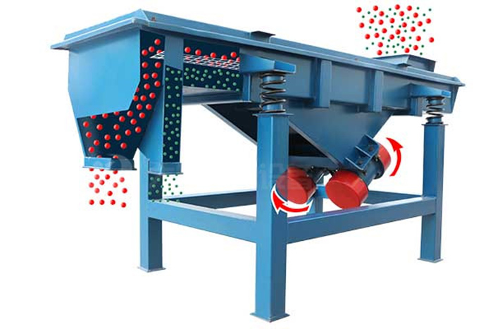 直線型振動篩兩電機(jī)軸相對篩面有一傾角,在激振力和物料自重力的合力作用下,物料在篩面上被拋起跳躍式向前作直線運(yùn)動,從而 達(dá)到對物料進(jìn)行篩選和分級的目的。可用于流水線中實(shí)現(xiàn)自動化作業(yè)。