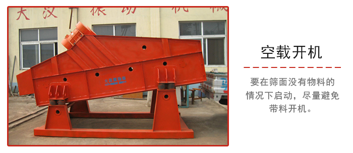 1、啟動的時候要在篩面沒有物料的情況下啟動,盡量避免帶料開機,篩機運轉(zhuǎn)平穩(wěn)后才能給料,停機前 應(yīng)先停止給料,待篩面物料排出后再停機,工作過程中應(yīng)經(jīng)常觀察篩機運行情況,如果發(fā)現(xiàn)有不正常的聲響或噪音,應(yīng)及時停機檢查,找出原因,排除故障。