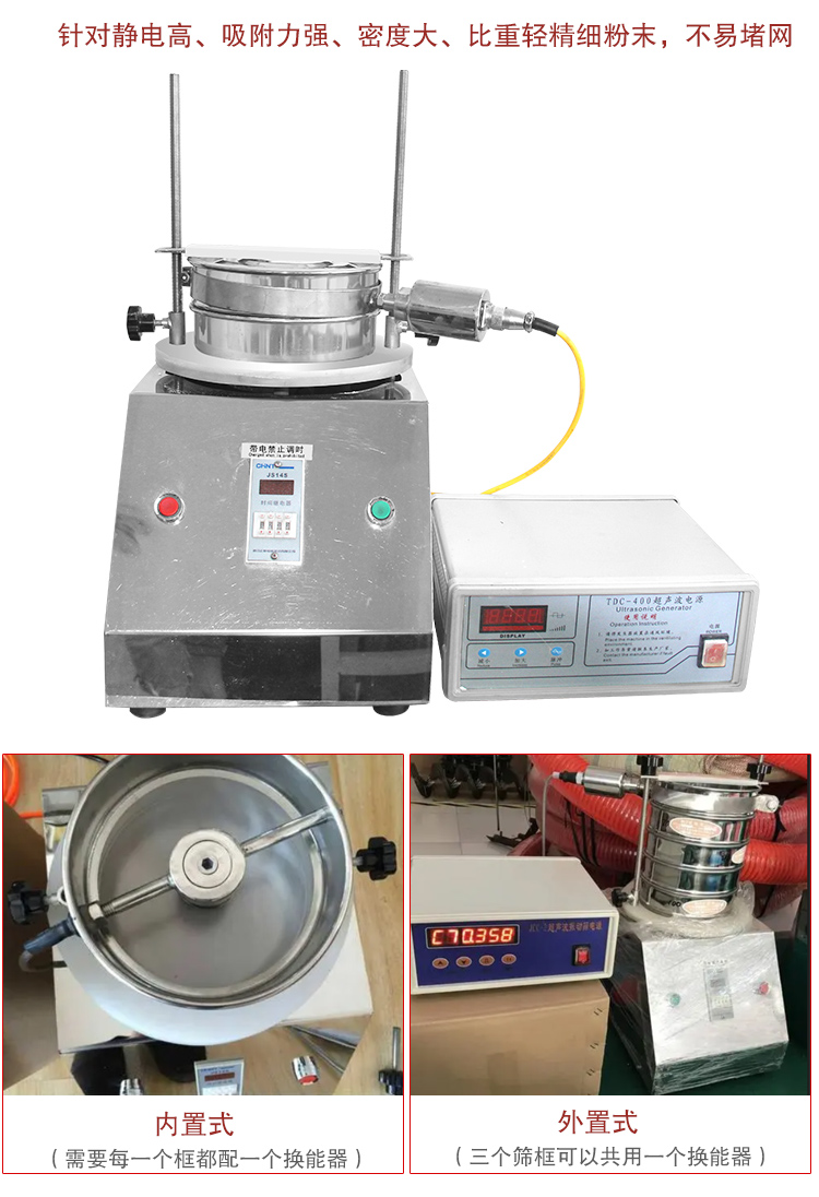 超聲波檢驗(yàn)篩是在普通檢驗(yàn)篩上加裝了超聲波換能器,是一種針對靜電高、吸附力強(qiáng)、密度大、比重輕精細(xì)粉末的檢驗(yàn)設(shè)備,它篩分細(xì)至低至20微米,而不會堵塞篩網(wǎng),解決了當(dāng)前實(shí)驗(yàn)篩在做微細(xì)粉分樣時(shí)因團(tuán)聚,靜電,強(qiáng)吸附性卡堵網(wǎng)孔等篩分難題。