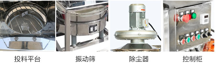 無塵投料站由人工卸料臺、下料倉、集塵系統(tǒng)、振動篩、過濾系統(tǒng)、反吹除塵氣囊等部件組成。