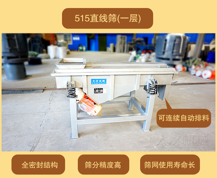 DZSF-515直線篩(寬)500mm×1500mm(長(zhǎng)),體積小移動(dòng)方便,價(jià)格便宜。大漢直線振動(dòng)篩廠家可為客戶量身定做特殊要求的直線振動(dòng)篩(單層或多層)。515直線振動(dòng)篩按材質(zhì)分為304不銹鋼材質(zhì)和碳鋼材質(zhì)。