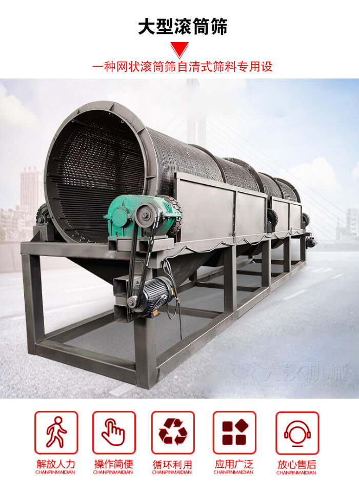 大型滾筒篩,因其獨(dú)特的結(jié)構(gòu)特點(diǎn),完全有效地解決了其他型式篩分設(shè)備所存在的缺點(diǎn),是綜合利用電站的篩型。是繼國(guó)內(nèi)各大公司生產(chǎn)的普通型網(wǎng)狀滾筒篩之后的自清式篩料專(zhuān)用設(shè)備。